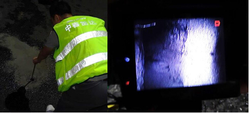 19對(duì)探測發(fā)現(xiàn)的一處大型空洞災(zāi)害點(diǎn)進(jìn)行釬探并采用電子內(nèi)窺鏡檢查地下空洞內(nèi)部情況。